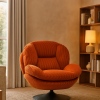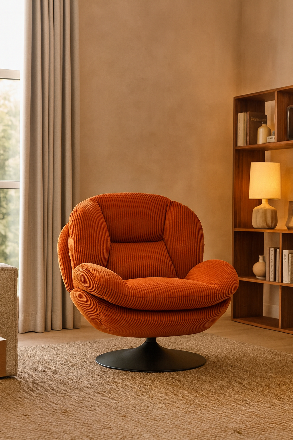 Fauteuil velours côtelé terracotta et pieds noir mat