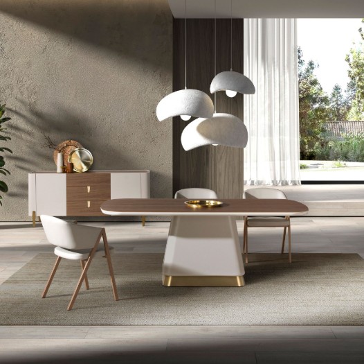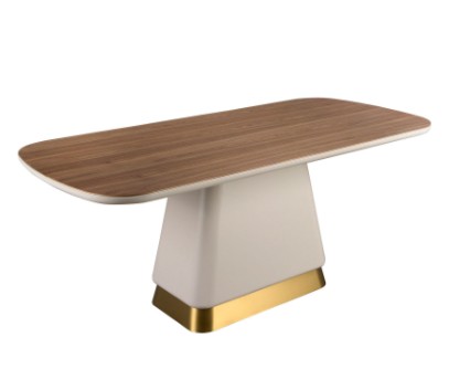 - Pied en bois et base en acier inoxydable poli de couleur or