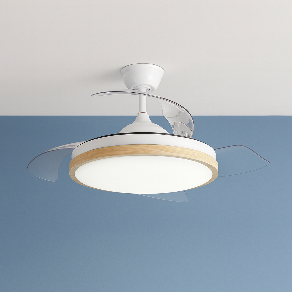 moteur aluminium blanc et pales en ABS effet bois, pales transparentes