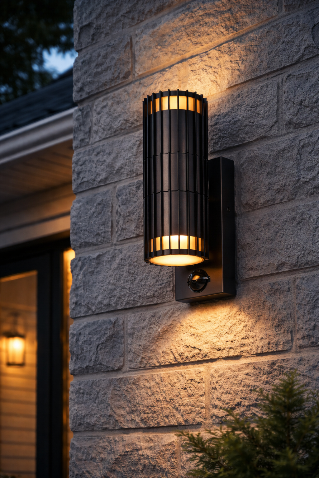 Applique mural extérieur avec détecteur en aluminium finition noire époxy