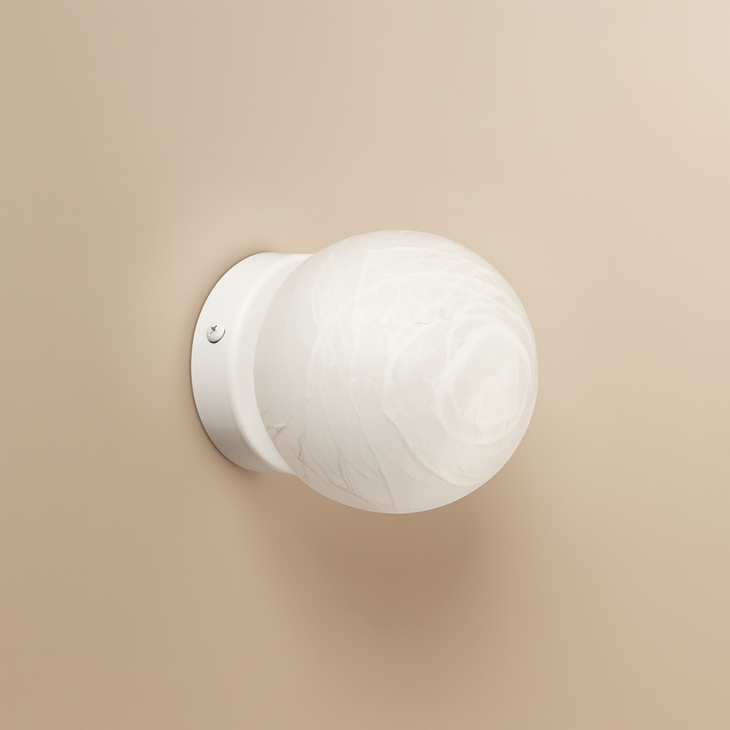 Base en métal blanc et abat jour en composite résine poudre d'albâtre