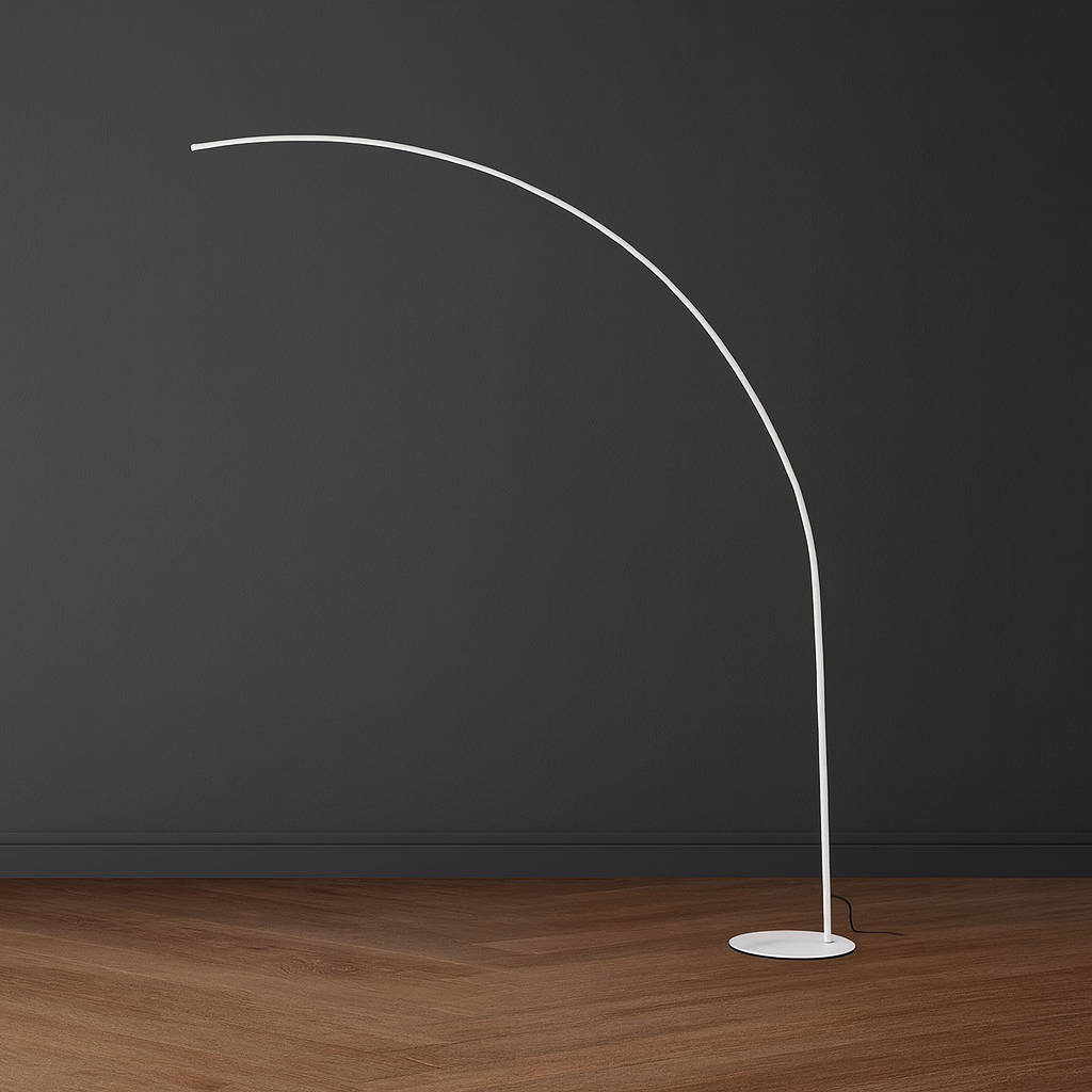 Base et corps lumineux en métal blanc mat, Câble en pvc et fiche.