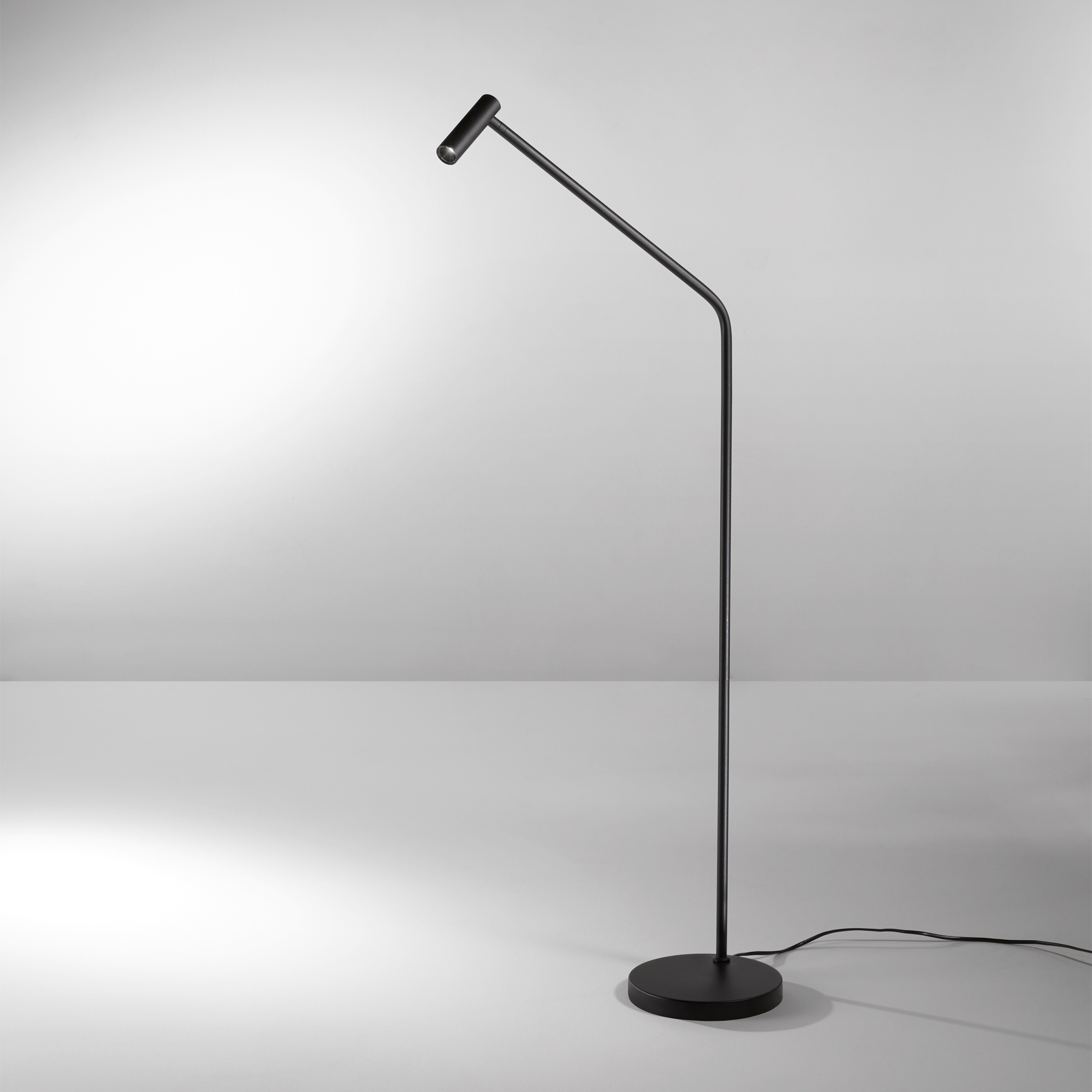 Base et corps lumineux en métal noir mat, tête orientable, Câble en pvc avec interrupteur et fiche.