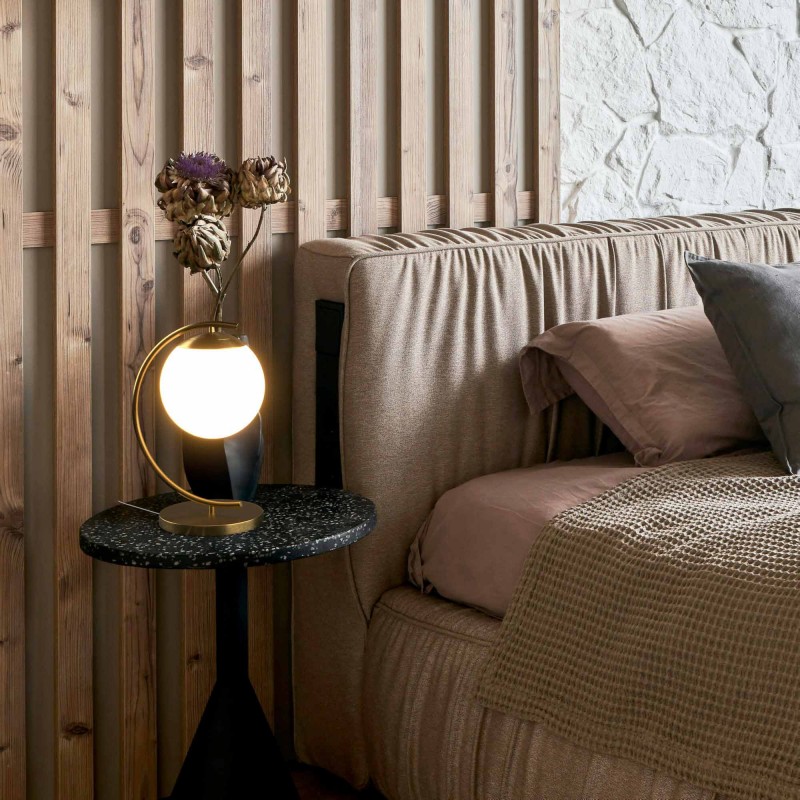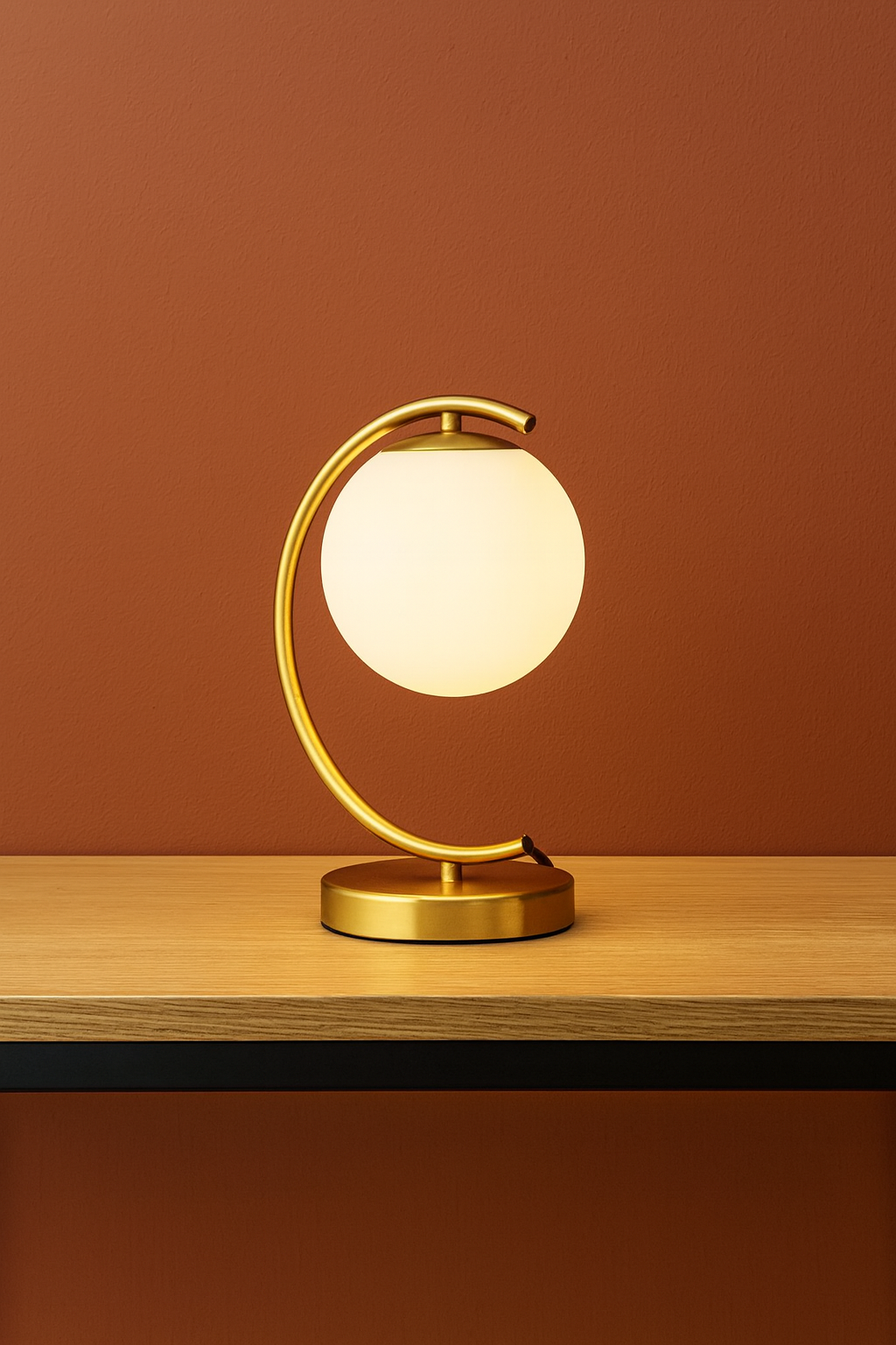 Métal or mat et globe en verre blanc, câble de 130 cm de long avec interrupteur et prise