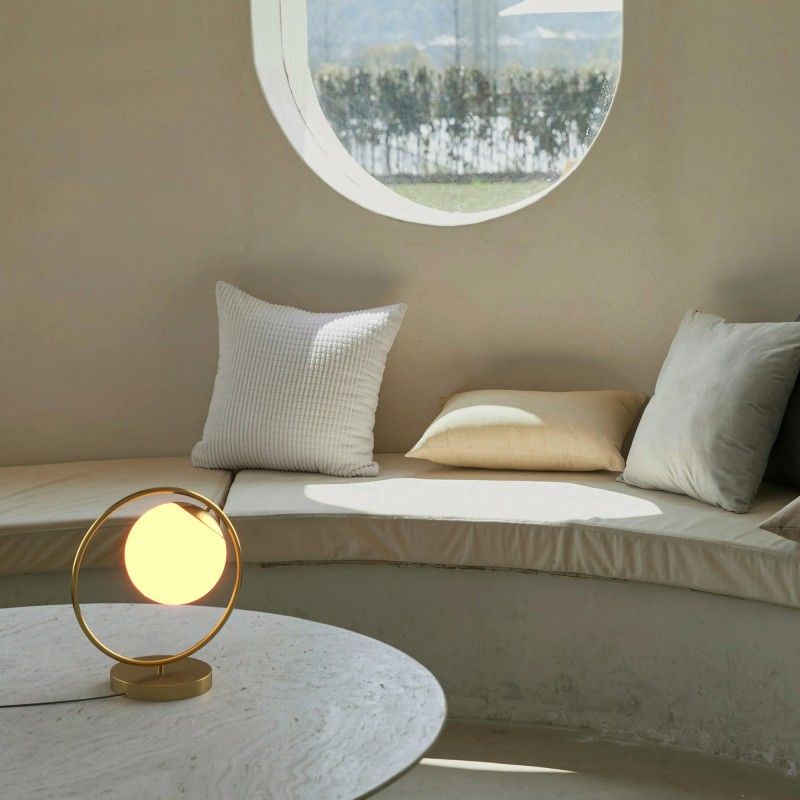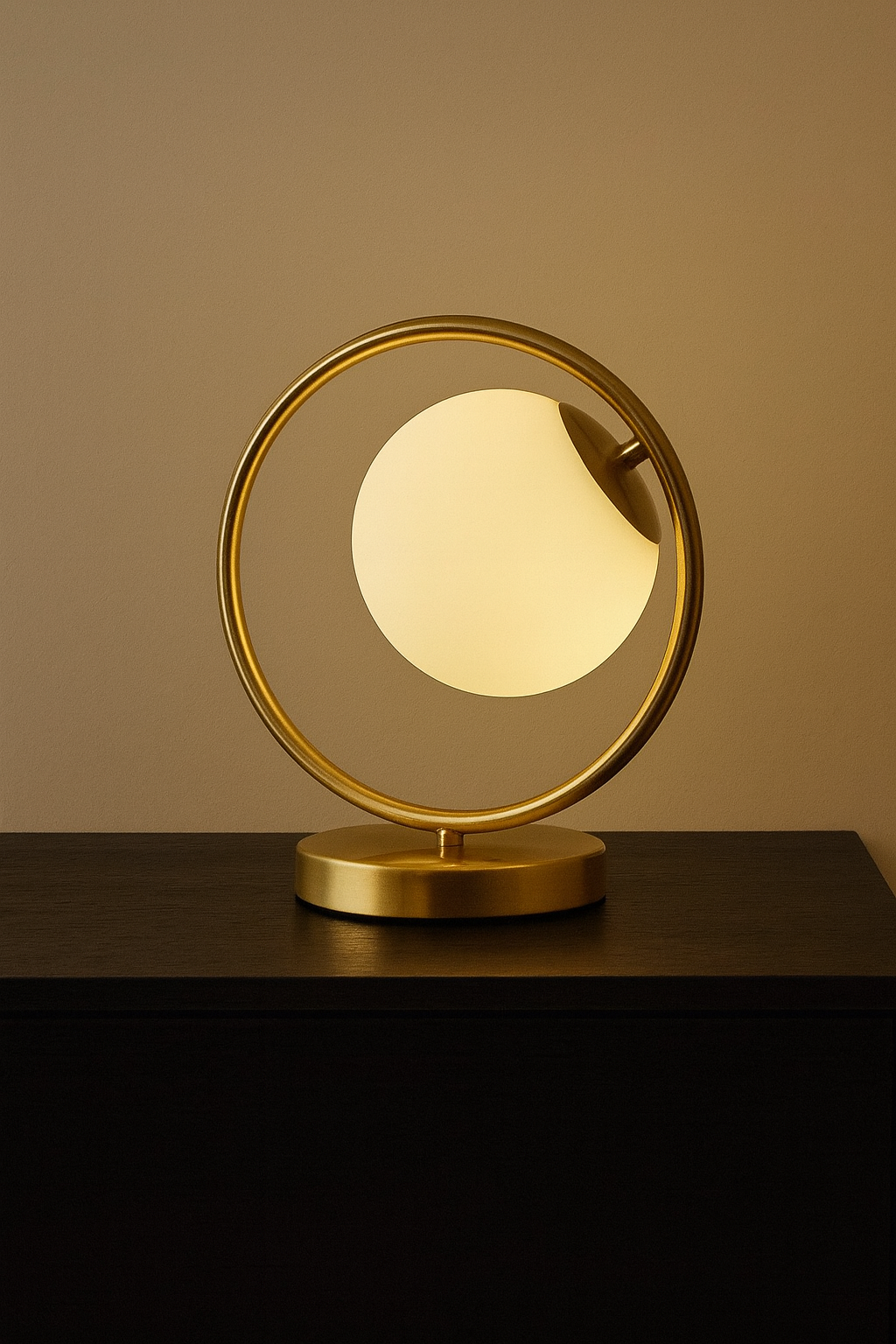 Métal or mat et globe en verre blanc, câble de 128 cm de long avec interrupteur et prise