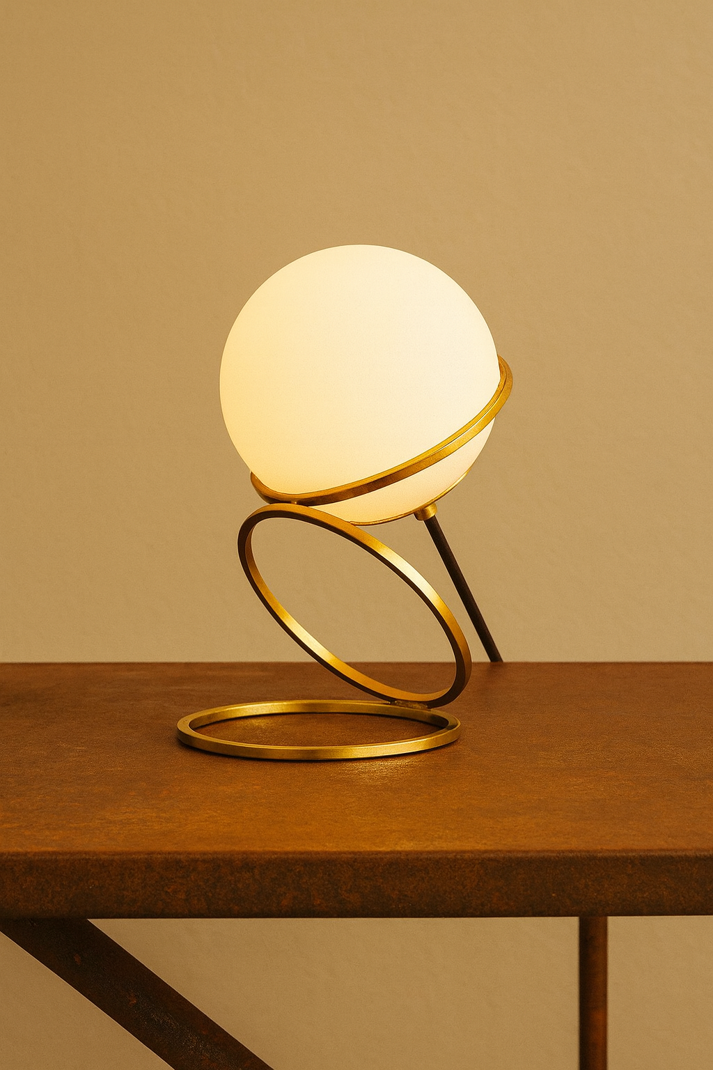 Métal or mat et globe en verre blanc, câble de 110 cm de long avec interrupteur et prise