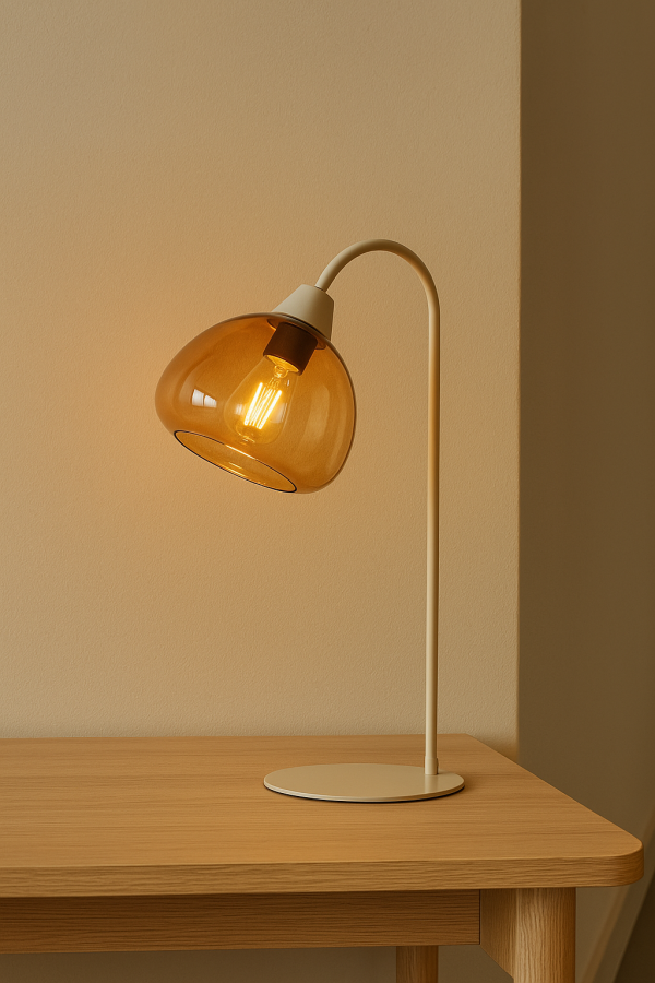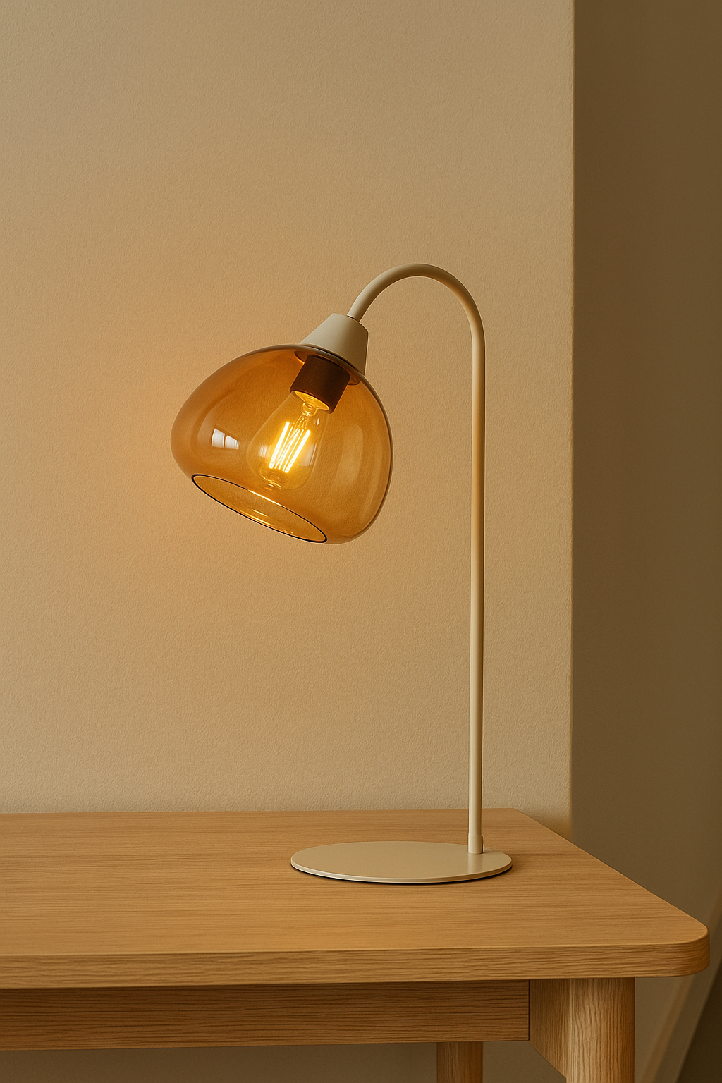 structure en aluminium laqué mat sable et abat jour en verre soufflée