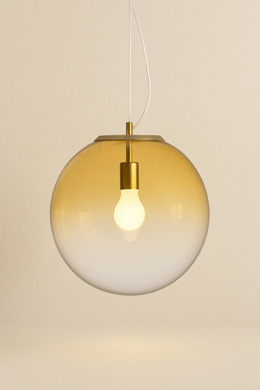1 globe XXL en verre ambré soufflé bouche, système de fixation laiton brossé