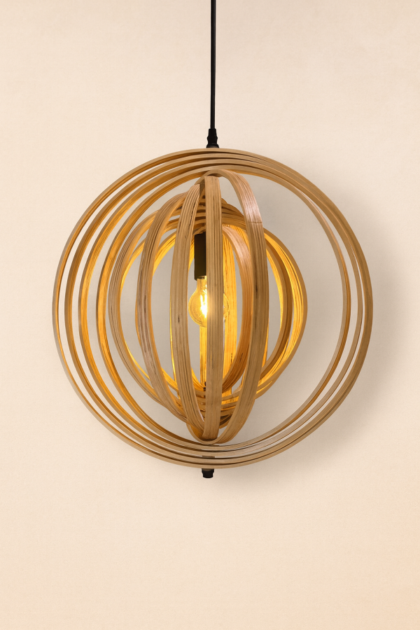 anneaux en bambou naturel, anneau orientable à 360 degrés, donnez lui la forme souhaitée. Fixation métal noir et câble noir.