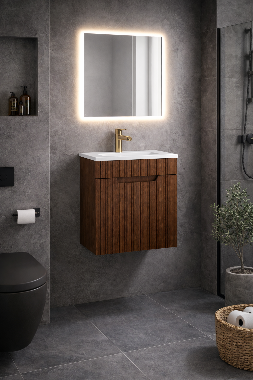 Meuble lave-main finition noyer tonka