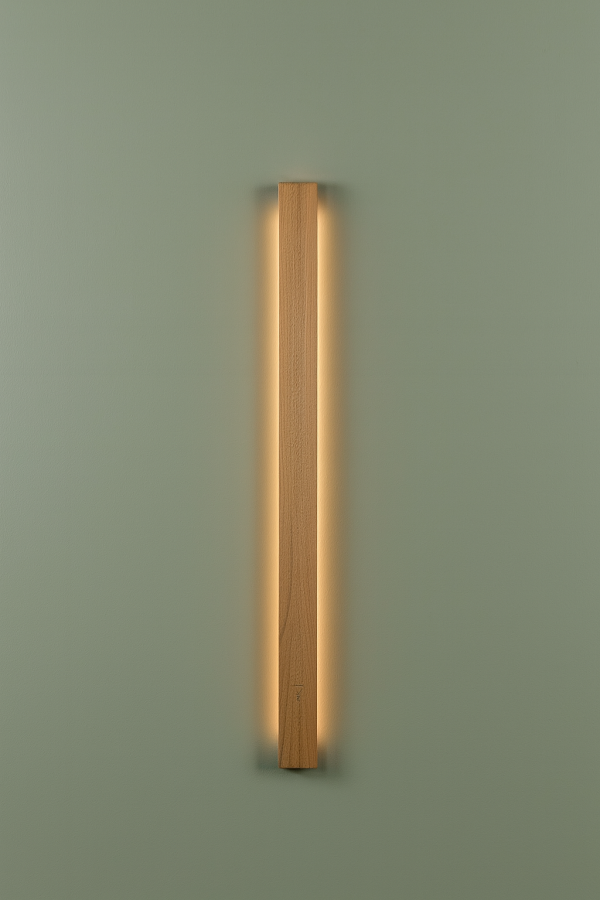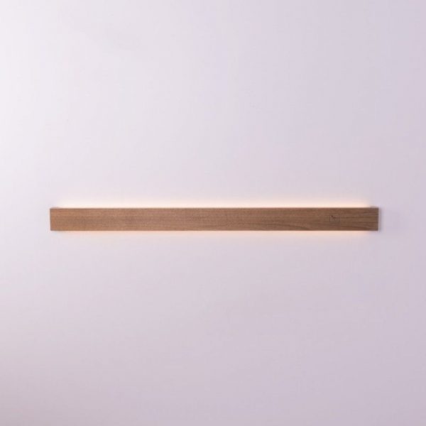 base en métal avec attaches magnétique et LED intégrés, recouverte d'un cache en chêne