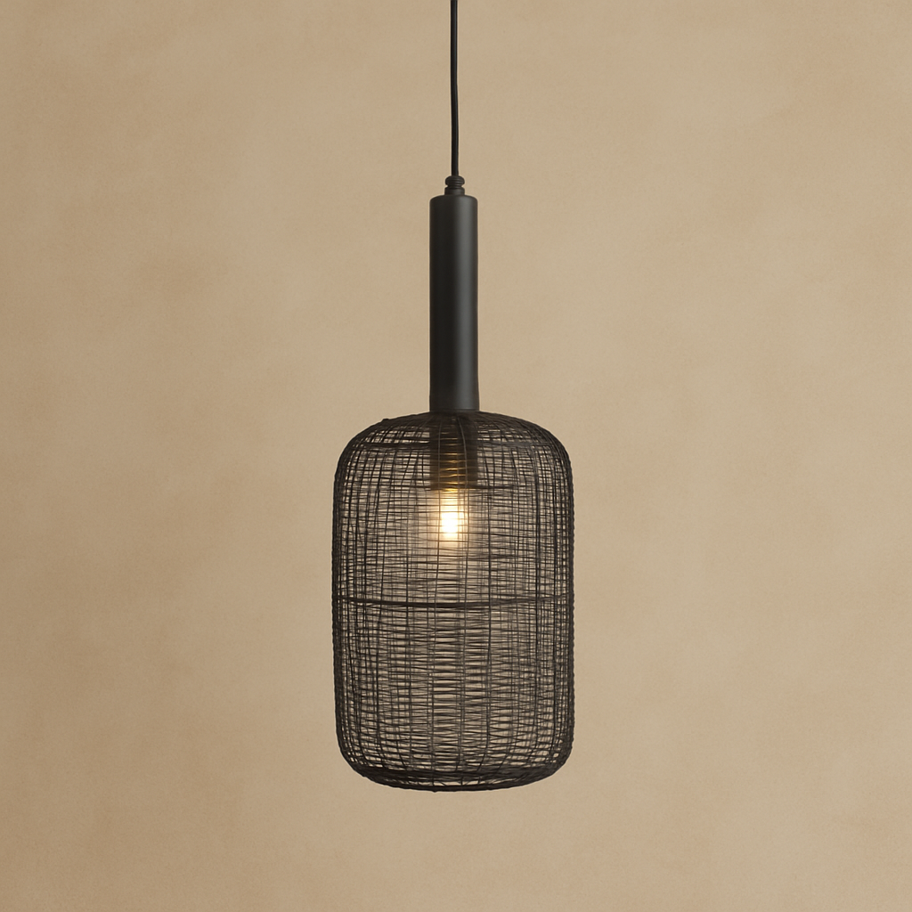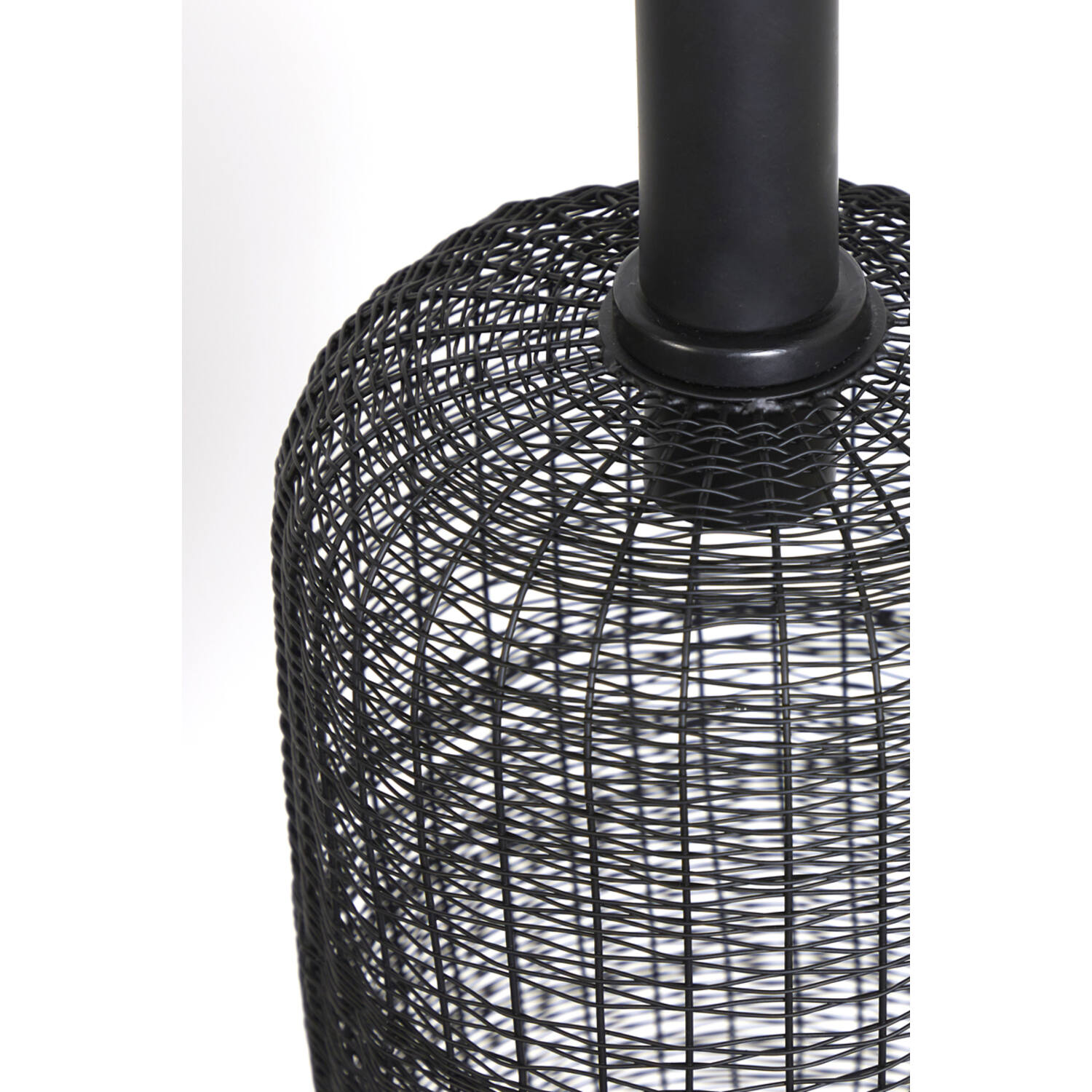 abat jour en maille métal noire - câble et support noir mat