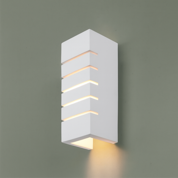 abat jour en plâtre brut blanc mat et fixation en métal blanc