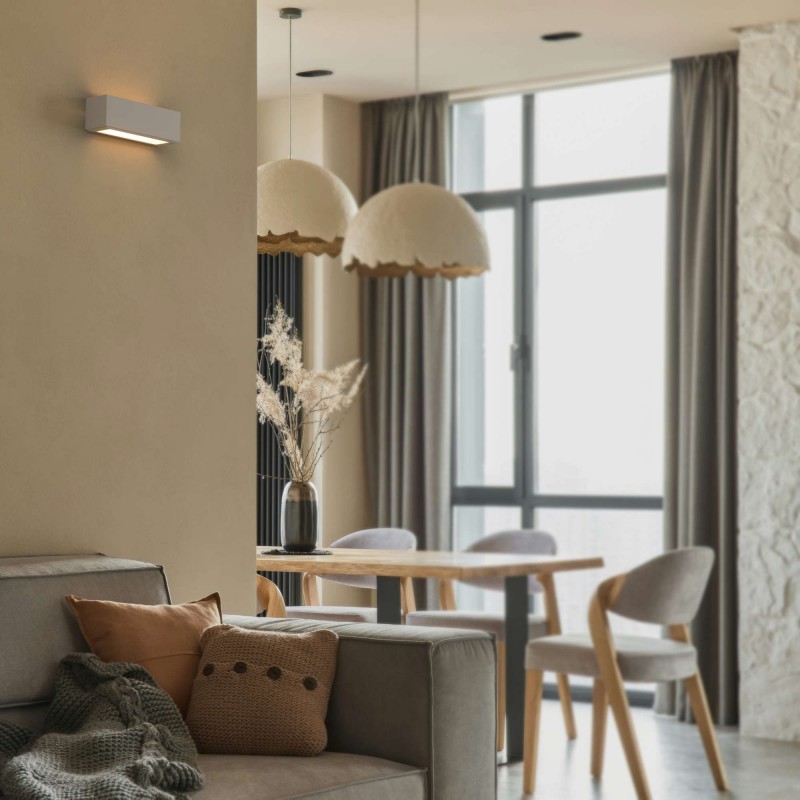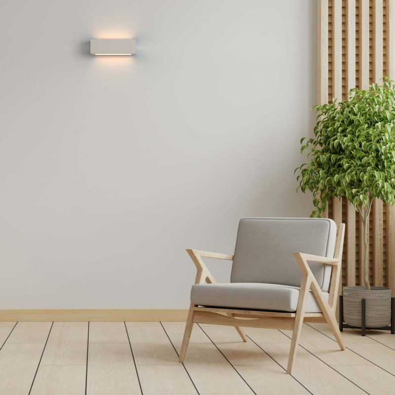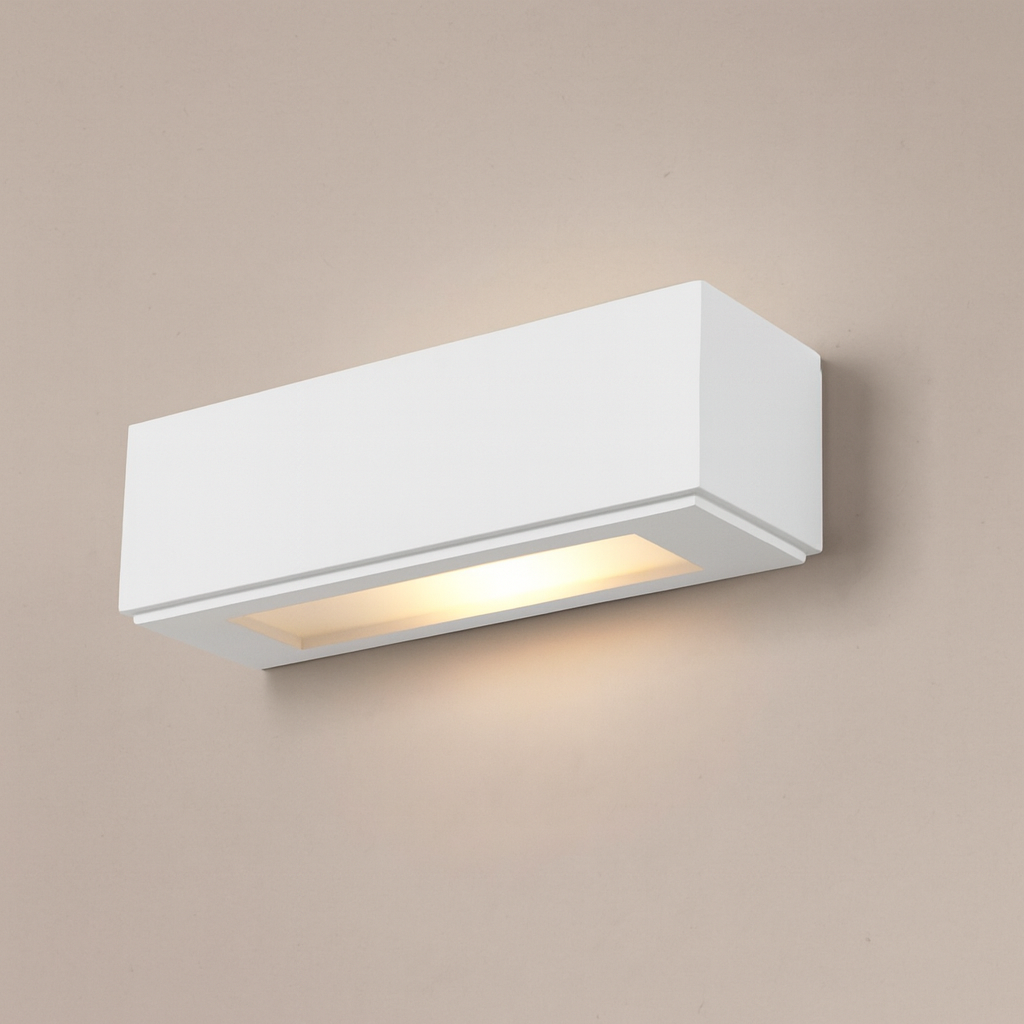 rectangle en plâtre brut blanc mat, fixation en métal blanc