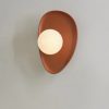 applique en béton couleur terre cuite et globe en verre blanc
