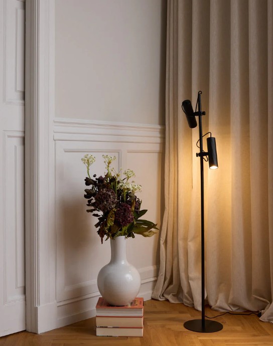 structure métal noir, tête orientable et réglable en métal cannelé noir