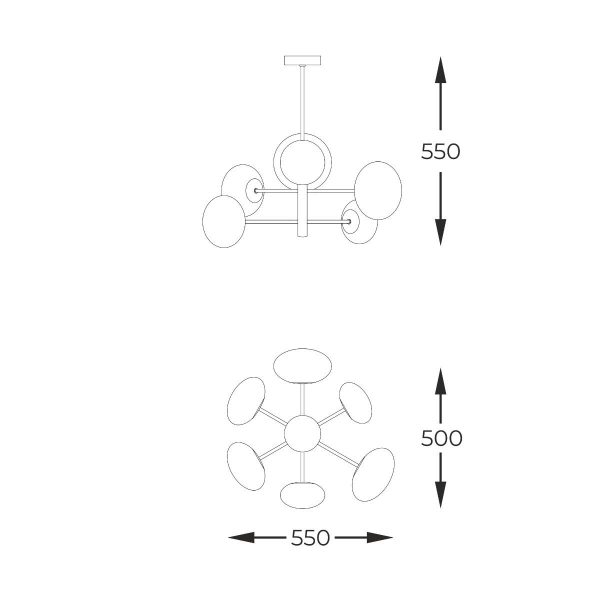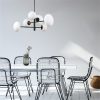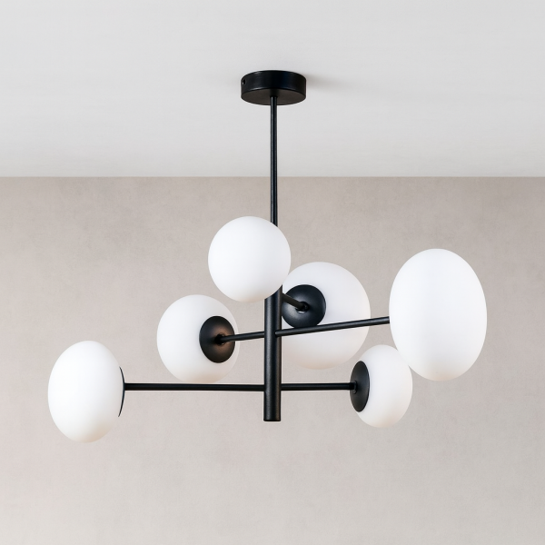 Structure en métal noir, 6 globes en verre en forme galet (2 tailles)
