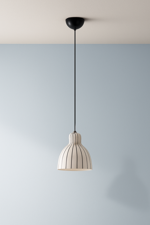 Abat-jour en céramique émaillé blanc et peinte à la main