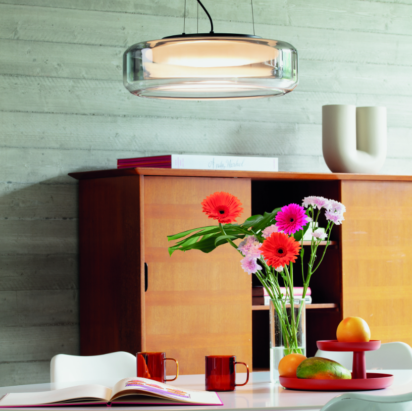 1 disque en verre fumé gris + 1 disque intérieur en verre Opalin avec dalle LED intégrée