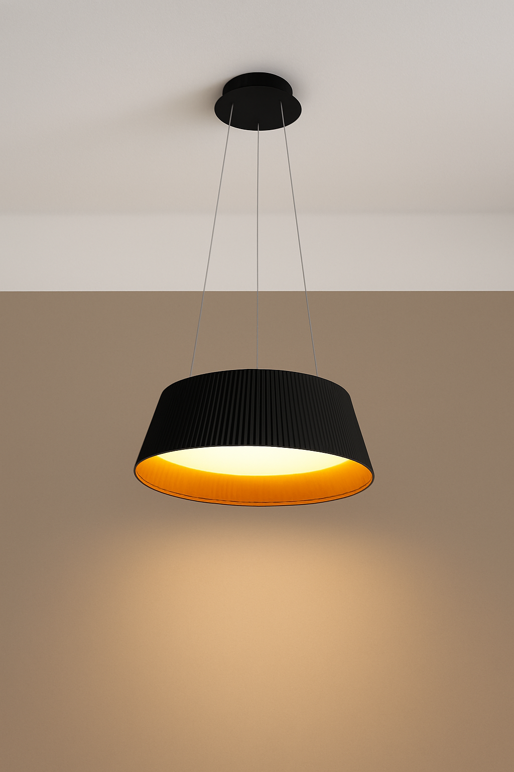 abat jour en Pvc noir cannelé intérieur bois - diffuseur PVC blanc opalin