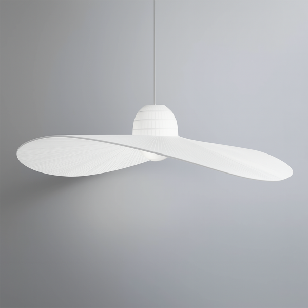 Abat jour XXL en satin blanc sur structure en métal blanche