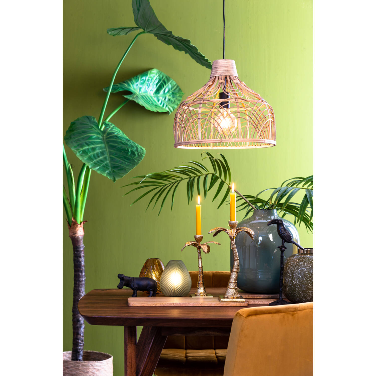 Abat jour en cannage et bois