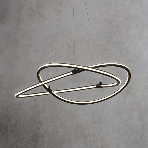 ruban en métal noir, diffuseur PVC opaque, fixation métal noir