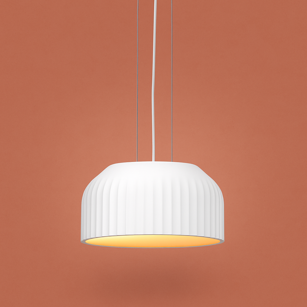 Plâtre cannelé - fixation en métal blanc et câble inox
