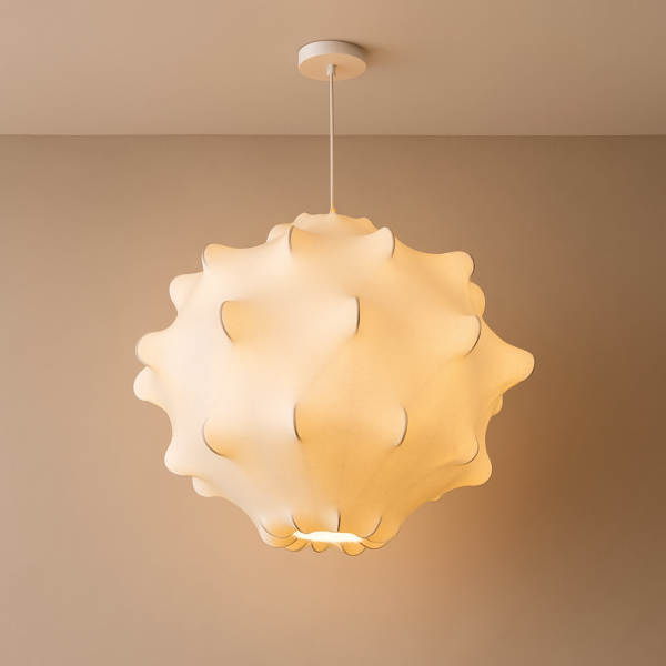 suspension métal blanc habillée d'une toile de soie blanche tendue