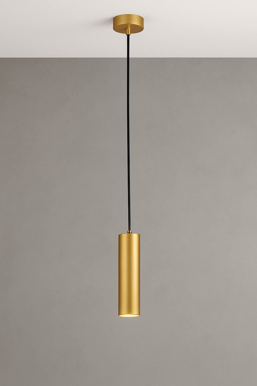 corps en aluminium or mat, fil PVC noir et fixation métal or mat