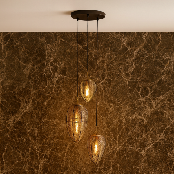3 abat jour en fil bronze (3 tailles différentes), fil et fixation noir