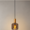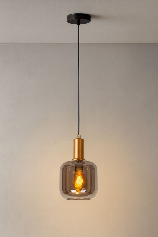 1 globe en verre fumé gris, douille métal or, fil tissé coton et fixation noire