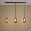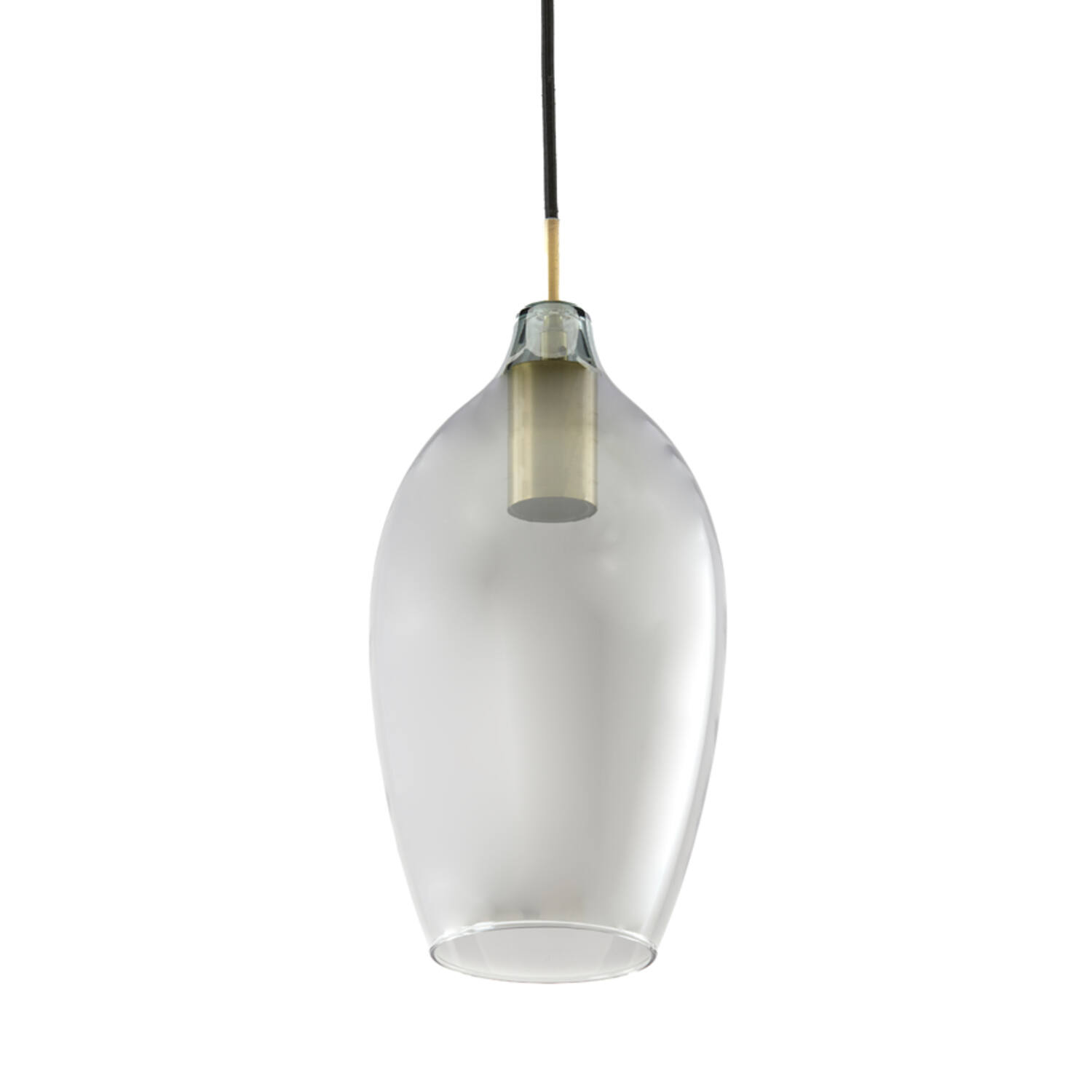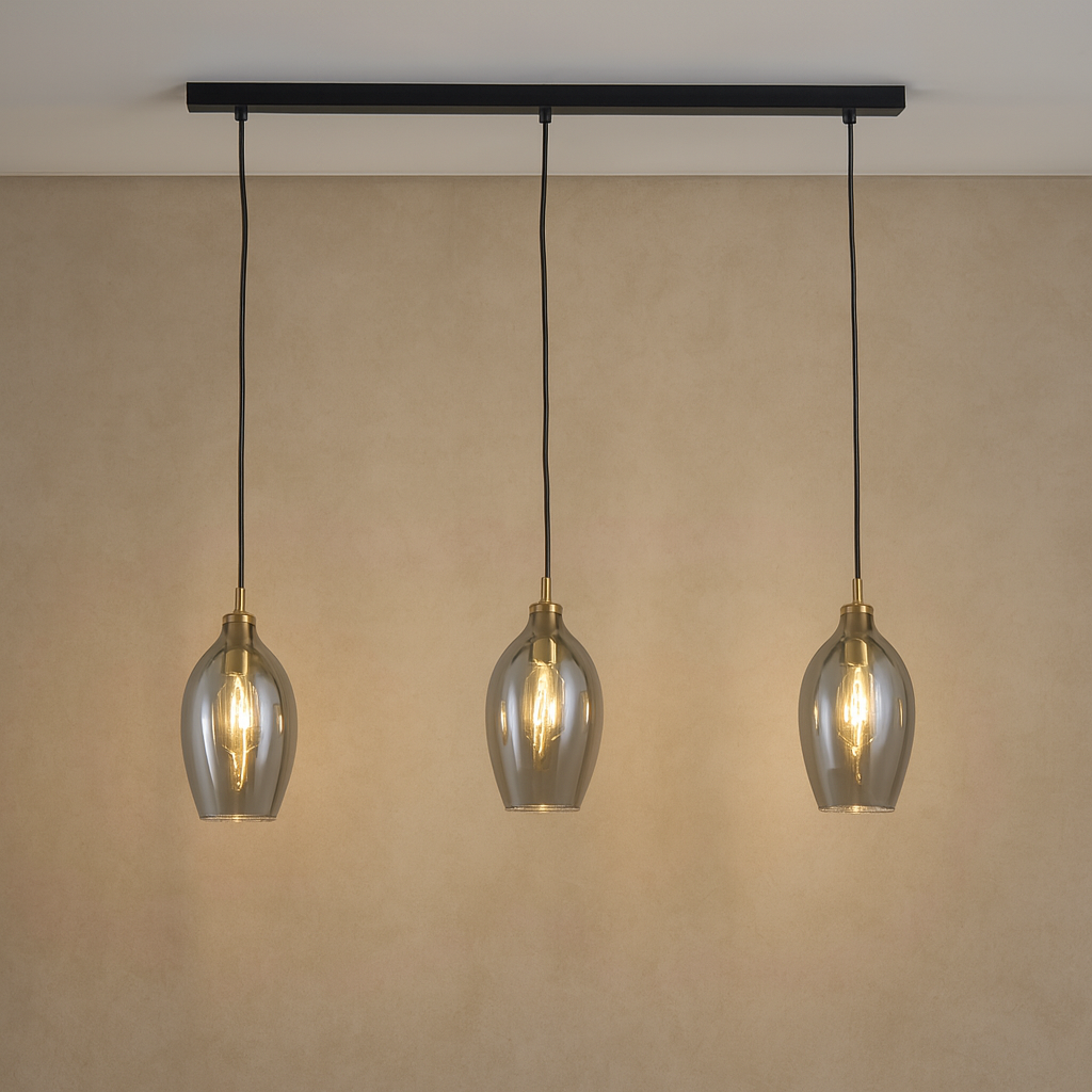 3 pendants en verre soufflé gris, douilles laiton, câbles coton noir, système de fixation noir mat