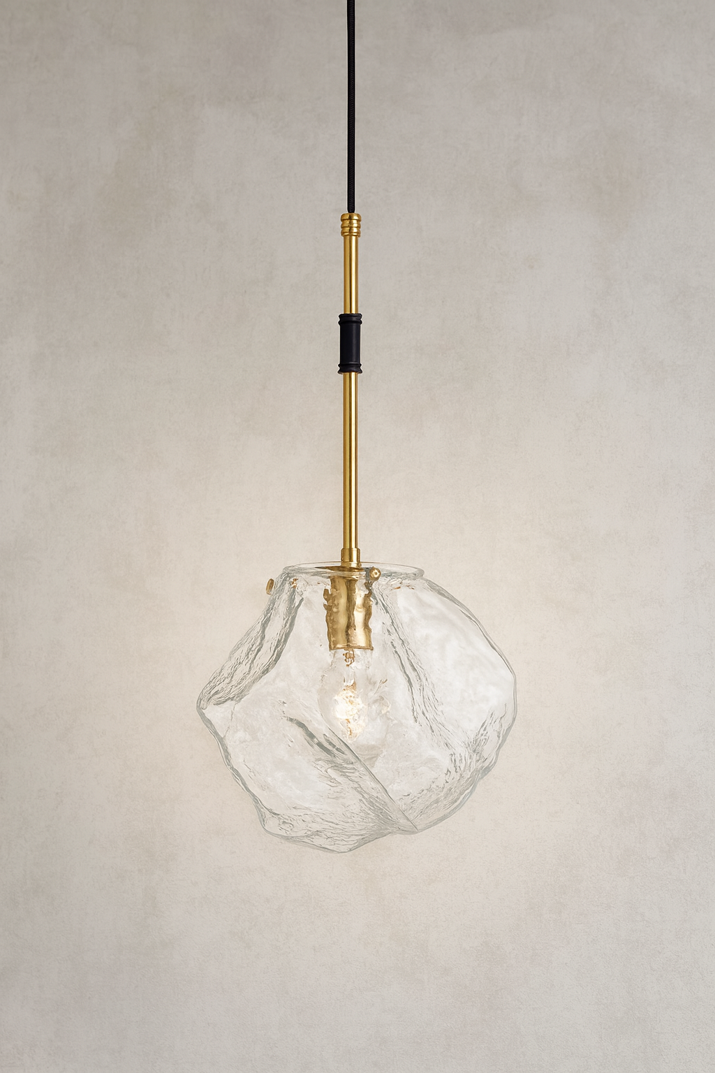 abat jour en verre effet glaçon, douille en laiton, fil PVC noir et fixation métal noir