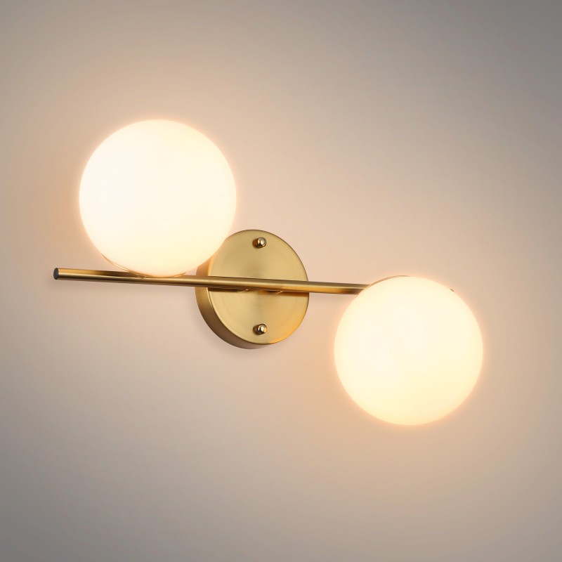 structure en métal finition laiton brossée et globes en verre blanc