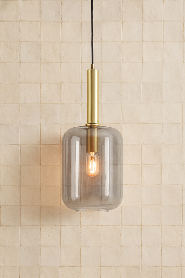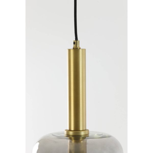 1 globe en verre fumé gris, douille métal or, fil tissé coton et fixation noire