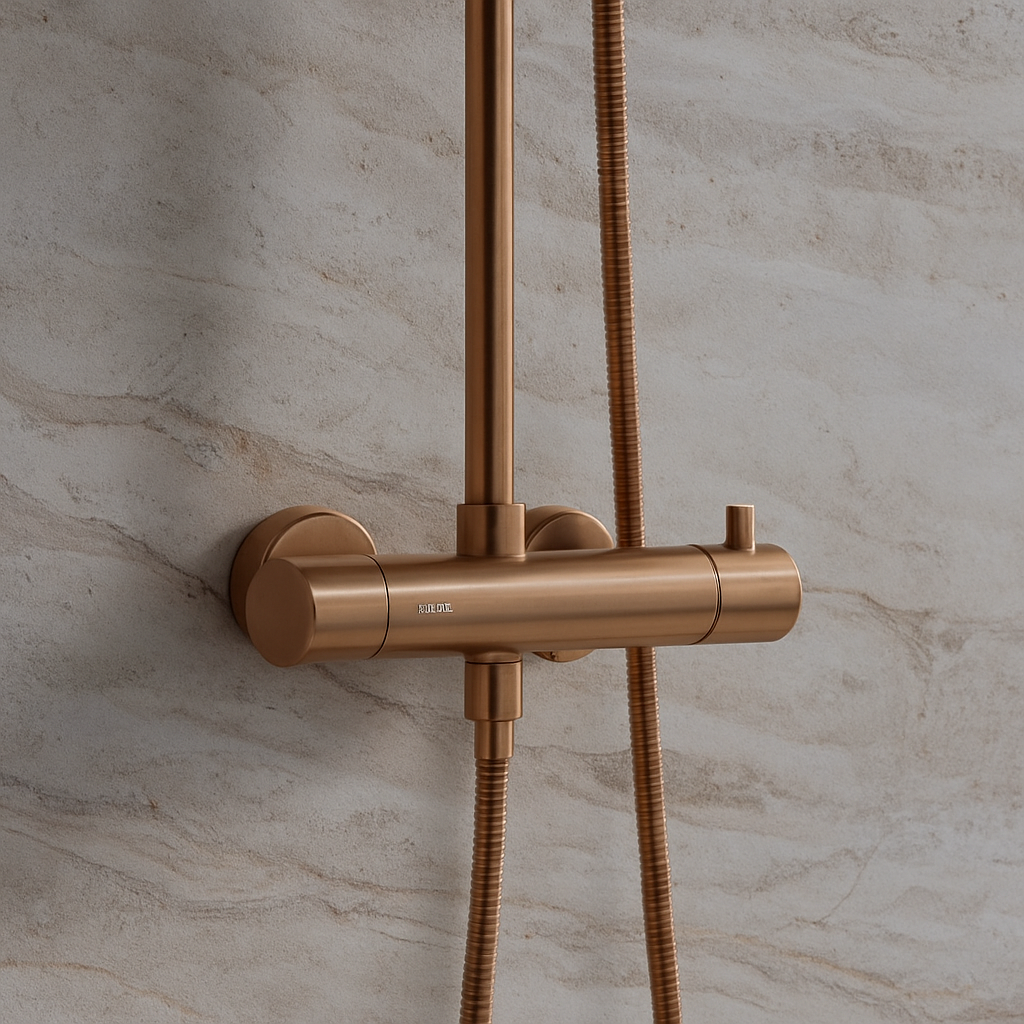 Mitigeur thermostatique en laiton finition PVD cuivre brossé