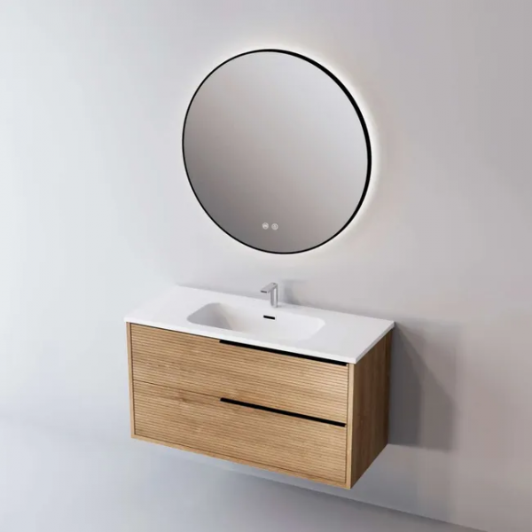 Meuble Suspendu Austin Bois aggloméré Poignés Noires avec vasque intégrée en Céramique