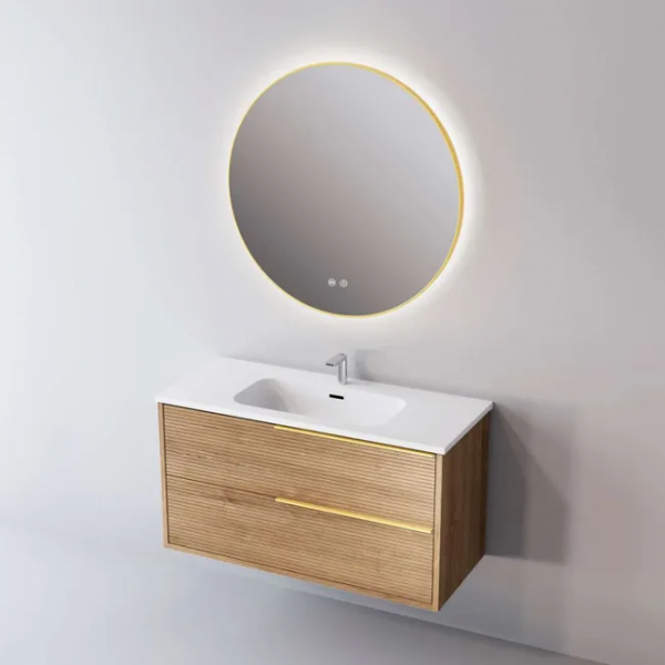 Meuble Suspendu Austin Bois aggloméré Poignés Or avec vasque intégrée en Céramique