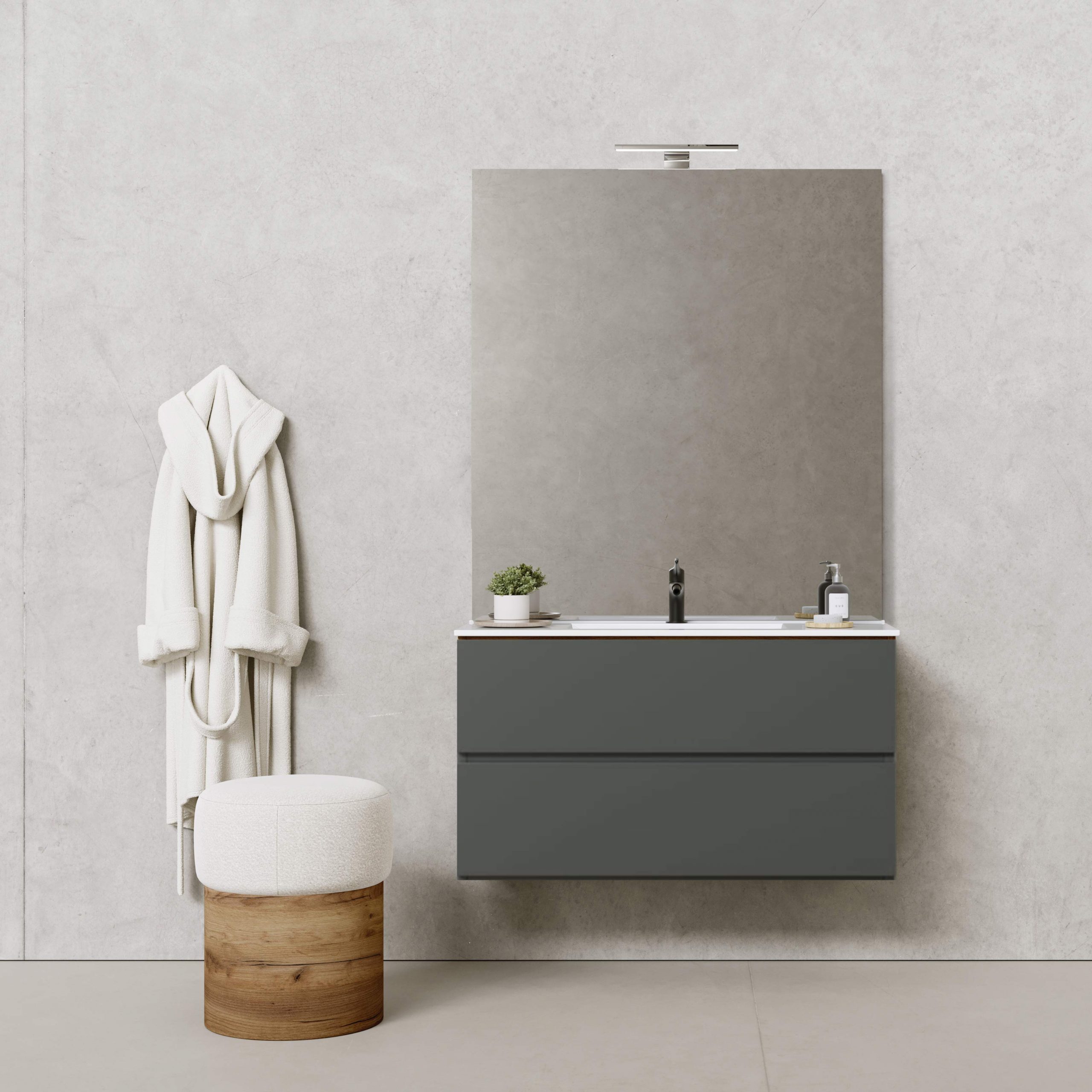 Meuble Suspendu Cairo 2 tiroirs mélaminé Anthracite avec simple vasque intégrée onyx en céramique blanc