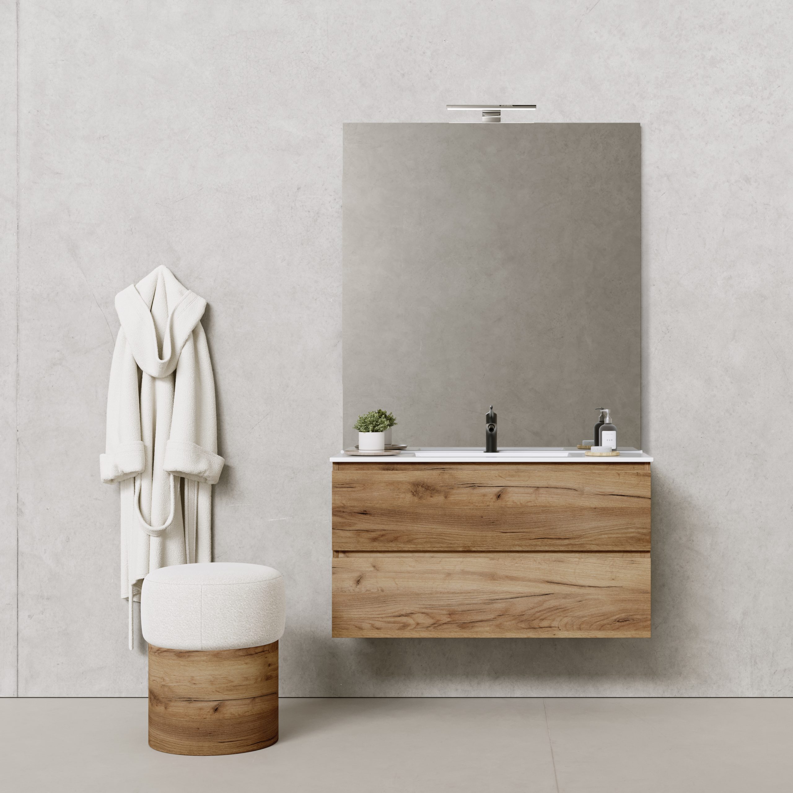 Meuble Suspendu Cairo 2 tiroirs mélaminé Roble Gold avec simple vasque intégrée onyx en céramique blanc