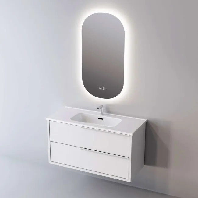 Meuble Suspendu Denver Laqué Blanc Mat Poignés Inox avec vasque intégrée en Céramique