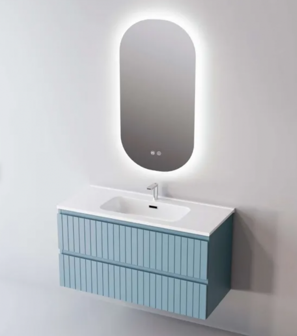 Meuble Suspendu Edmonton 2 tiroirs Cobalt avec vasque en céramique intégrée blanc