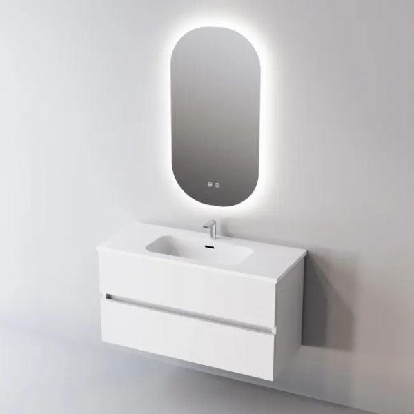 Meuble Suspendu Houston Blanc laqué avec vasque intégrée en céramique