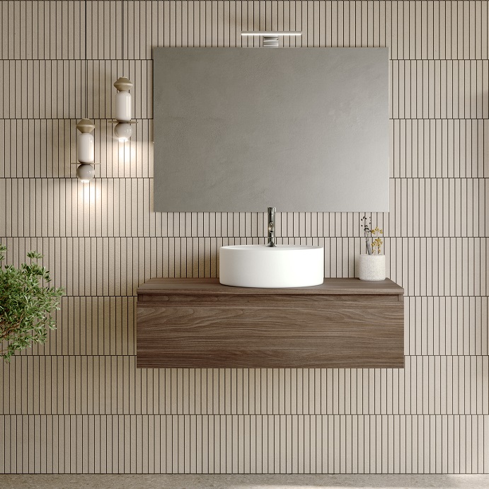 Meuble Suspendu June Nogal 1 tiroirs + Plan de toilette