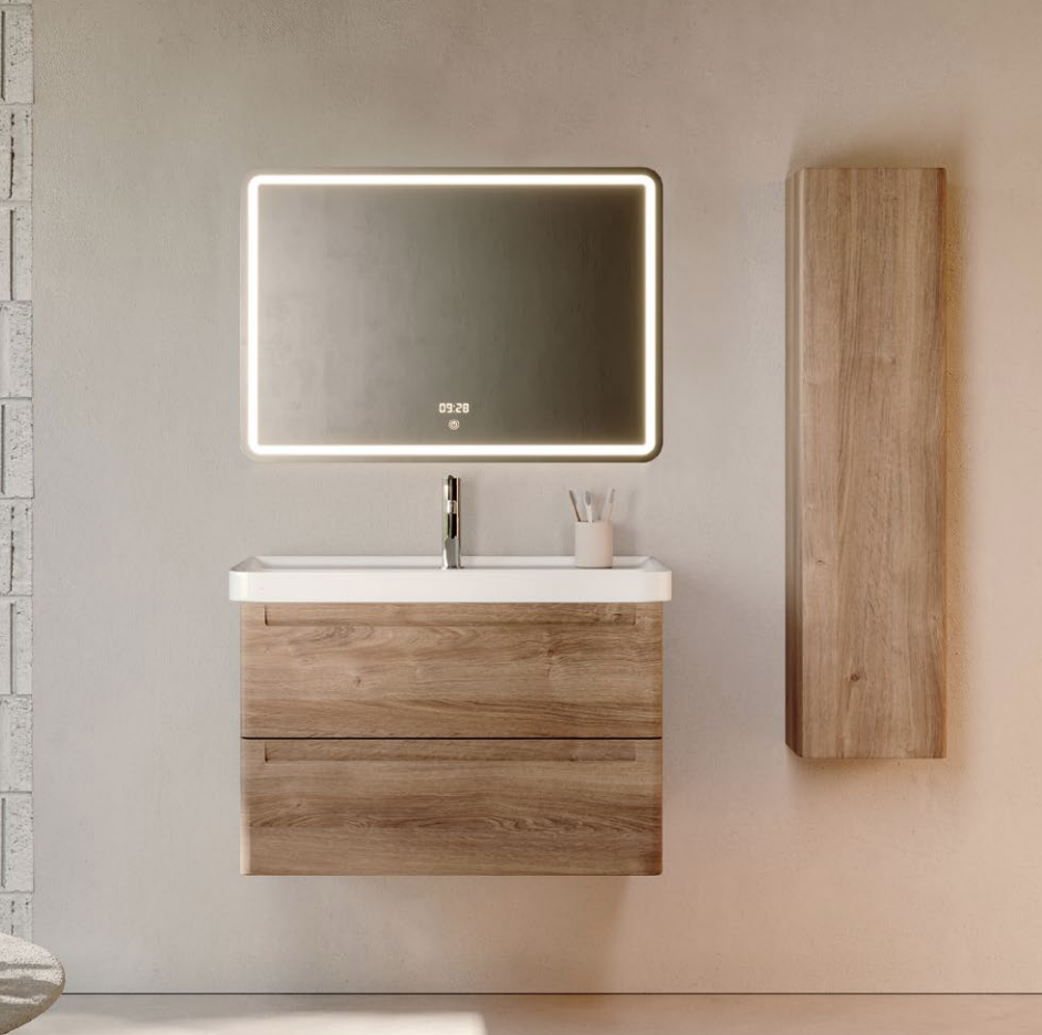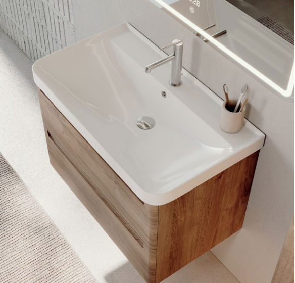 Meuble Suspendu Round 2 tiroirs Bois Alba avec vasque intégrée Cosmos en céramique blanc