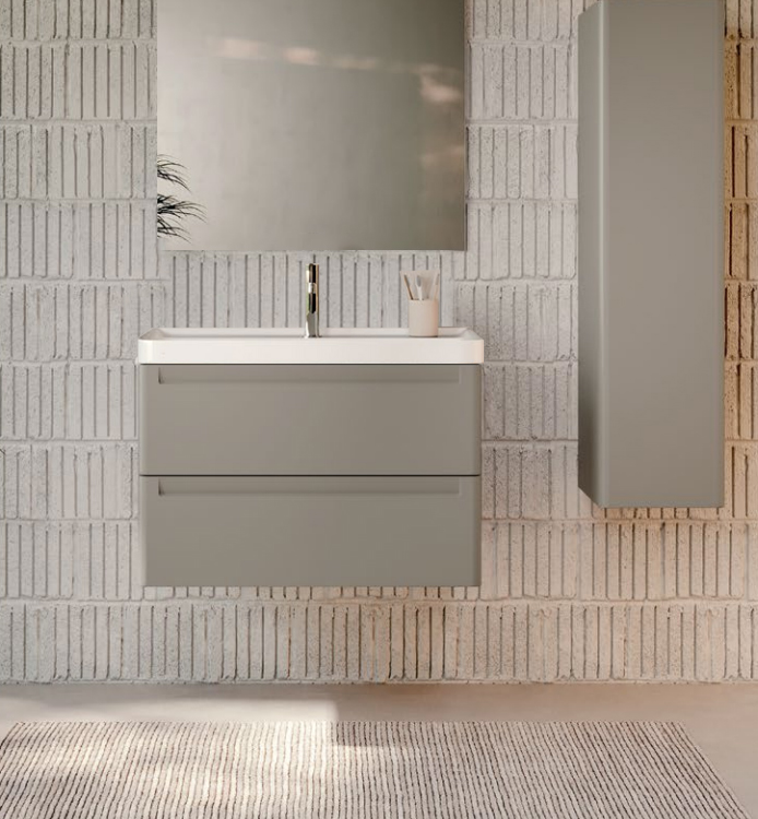 Meuble Suspendu Round 2 tiroirs Calcium avec vasque intégrée Cosmos en céramique blanc